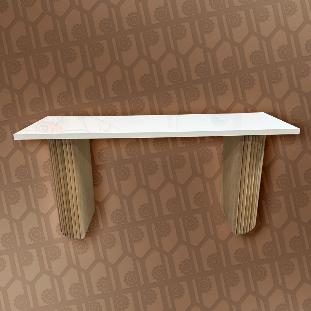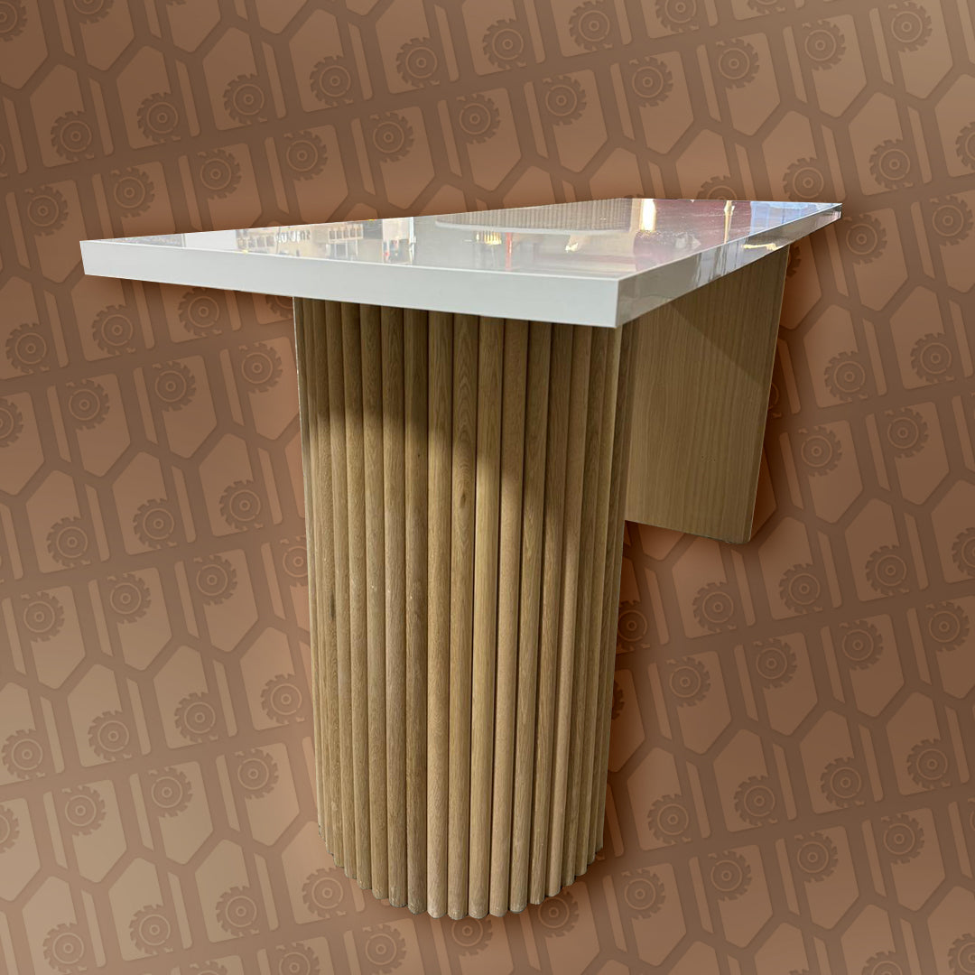 Introduce elegance and practicality into your space with our White Oak Wooden Table. Designed with half-round oak detailing and a sleek high-gloss white top, this table blends style with functionality. Perfect as a dining table, desk, or centerpiece, it enhances both home and office interiors.